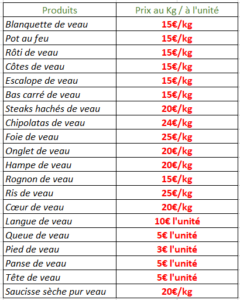 prix détail flyer veau